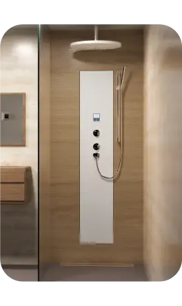 The Upfall Shower recirculates, filters, and purifies water in real time, ensuring a hygienic and refreshing shower with minimal water waste. Its UV-C disinfection and advanced filtration system remove impurities, providing continuous safe water throughout your shower.